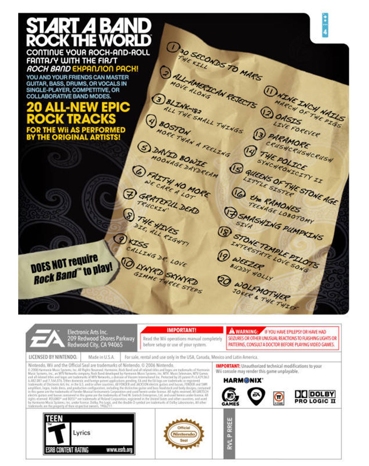 Aumenta tú colección de canciones en Rock Band con esta versión extra, que incluye 20 grandes éxitos como: