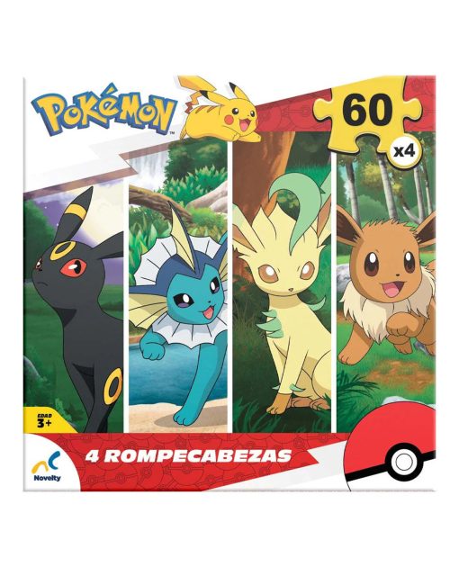 Rompecabezas 4 en 1 Pokémon – Eevee (60 piezas cada uno)