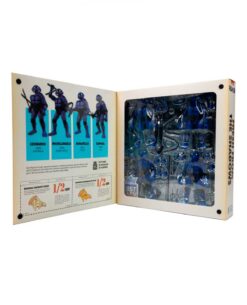 Este set con las 4 tortugas es una verdadera pieza de colección, vemos a los 4 hermanos en un color azul de medianoche con negro, con manos, cabezas, expresiones, armas y accesorios diversos.