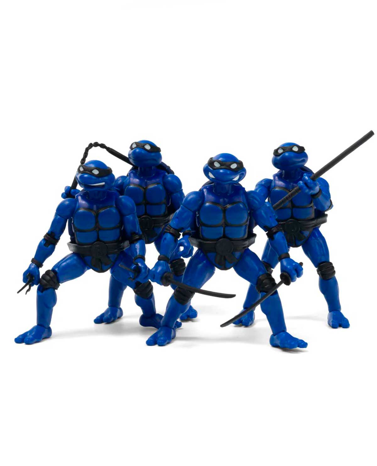 Este set con las 4 tortugas es una verdadera pieza de colección, vemos a los 4 hermanos en un color azul de medianoche con negro, con manos, cabezas, expresiones, armas y accesorios diversos.