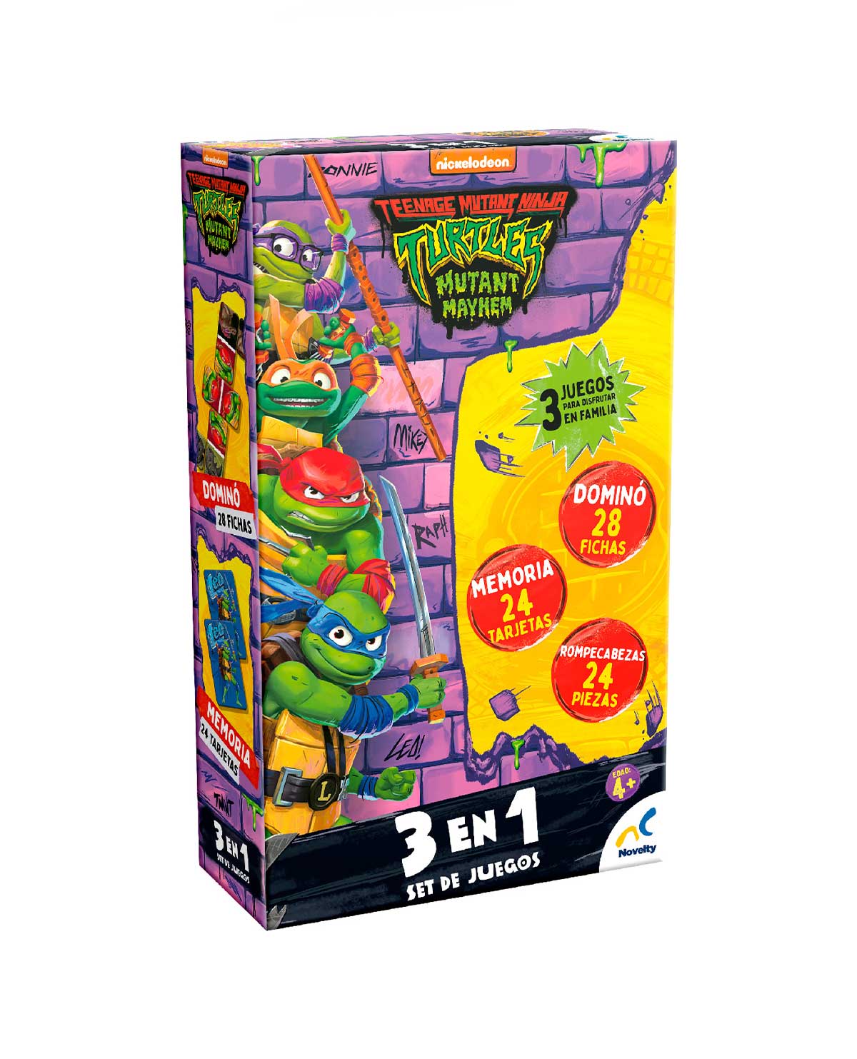 Agiliza su mente jugando dominó, mejora su atención formando pares en la memoria y trabaja su visión espacial armando el rompecabezas mientras conviven con sus personajes preferidos de Nickelodeon.