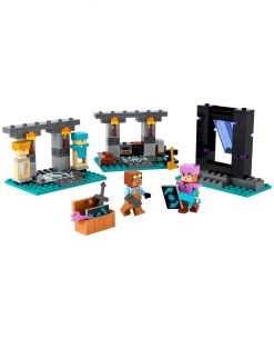 Este juguete infantil construible incluye 2 conocidas figuras: la heroína de acción Minecraft Alex, con su escudo y su espada de diamante, y el armero. Puedes explorar 3 entornos: la zonade trabajo, con un yunque, un horno, una piedra de afilar y un caldero lleno de lava; la sala de exposición de armaduras, cuyo cofre contiene un hacha dorada, un tridente encantado, una espada de netherita, un casco y otros recursos Minecraft; y el portal del Nether, con su entrada de puertas batientes hacia la nueva aventura de los jugadores.