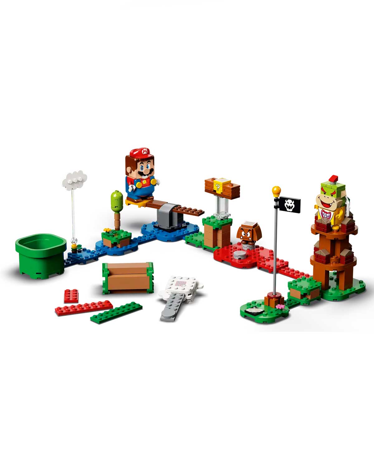 El set incluye una figura de LEGO Mario que emite respuestas y expresiones inmediatas a través de las pantallas LCD y el altavoz. Los jugadores ganan monedas virtuales por trasladar a LEGO Mario desde la tubería inicial hasta el banderín recorriendo plataformas giratorias y caminando sobre nubes, usando el bloque ? y librando superbatallas contra las figuras de juguete de Bowsy y el Goomba. Reorganiza los ladrillos para crear nuevos niveles que superar.