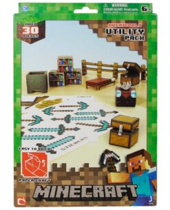 Divertido set de montaje de figuritas y elementos llamado “Utlity Pack” conocido con el nombre de “Papercraft” perteneciente al popular y exitoso videojuego “Minecraft” de la serie 1. Muy fácil de montar. Recordemos que un papercraft es una de construcción de figuras tridimensionales de papel, similar al origami. Sin embargo, difiere del origami en que sus patrones pueden consistir en muchas piezas de papel cortadas con tijeras y unidas con pegamento, lo cual contradice la filosofía del origami que sólo contempla doblar papel y nunca recortarlo o pegarlo.