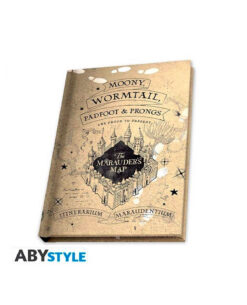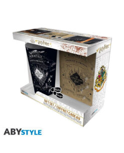 vaso extra grande de 400 ml, pin y libreta; todos personalizados con gráficos relacionados con el mapa del Merodeador.