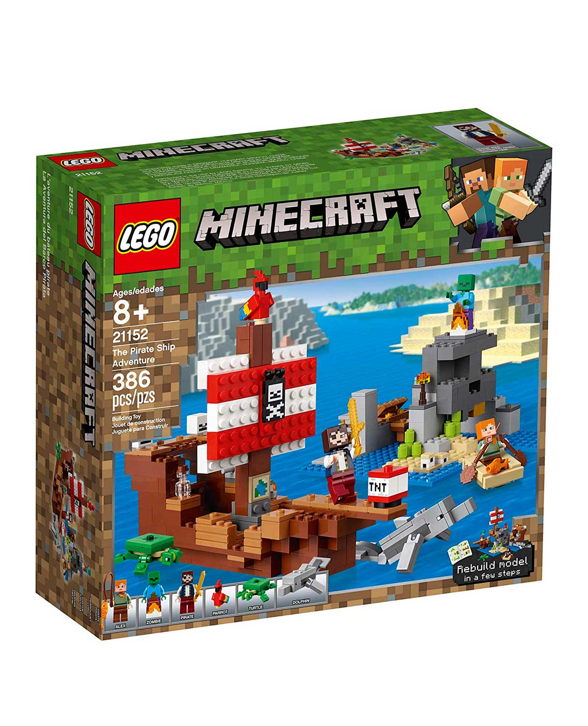 ¡Construye un barco pirata con detalles dorados, bandera pirata, pasarela, cañones y un simpático loro! El set LEGO Minecraft La Aventura del Barco Pirata incluye una gran variedad de detalles y personajes, como una minifigura con piel de pirata, un delfín y una tortuga con 2 huevos. Coloca al zombi en la base especial para activar el efecto de zombi Minecraft en llamas y ahuyenta a las criaturas hostiles con los lanzamisiles del barco. Construye divertidas aventuras de piratas al estilo Minecraft con este set LEGO Minecraft. ¡Intercambia fácilmente las secciones modulares del barco para construir una base tropical para piratas o combínalo con otros sets para crear un universo LEGO Minecraft a tu medida! Incluye también una minifigura de Alex.