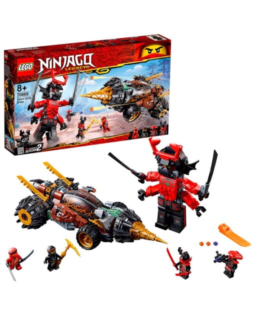 Enfréntate al guerrero de piedra gigante con la Perforadora de Cole LEGO®NINJAGO Legacy y recupera la Hoz de los Temblores robada. El vehículo ninja de juguete para construir cuenta con una cabina abatible para 2 minifiguras, función de giro automático de ruedas y barrena, y 2 cañones; la figura de acción del guerrero de piedra gigante articulado cuenta con 2 grandes espadas. Este emocionante juguete de un guerrero ninja incluye un arma dorada coleccionable (la Hoz de los Temblores), así como 4 minifiguras LEGO NINJAGO con armas para interpretar y reinventar las clásicas escenas de acción de la serie para televisión NINJAGO: Maestros del Spinjitzu.