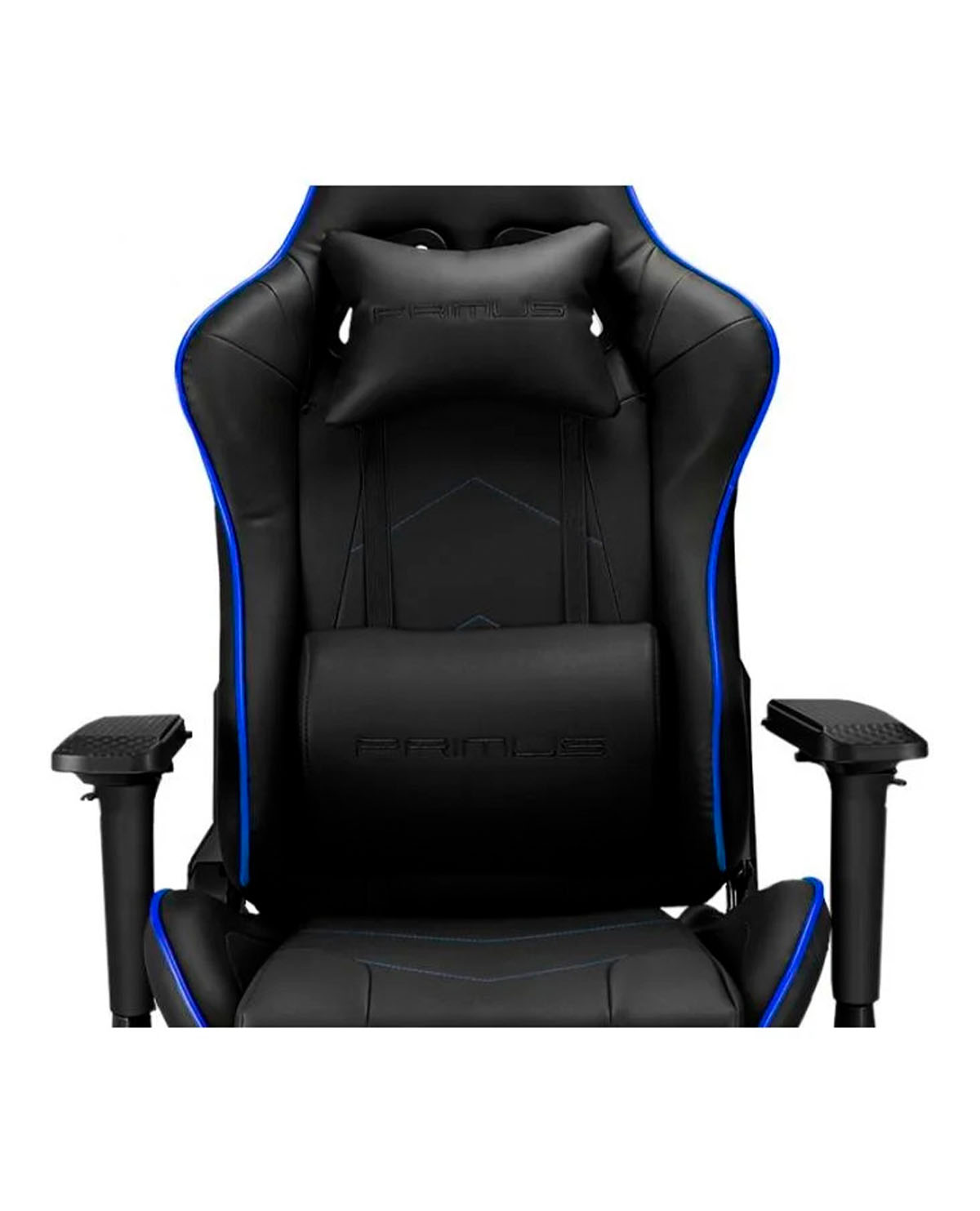 Con un acabado en negro con detalles azules y el logo bordado de Primus, esta silla no solo mejora tu postura, sino también tu estilo gamer.