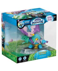 halcones Zafiro Azul. Eran una de las especies más amenazadas de Skylands, pero Air Strike los enseñó a defenderse de los depredadores… y a no estrellarse contra las ventanas. De todo Skylands acudían aves para aprender sus reputadas técnicas. Pero, a pesar de sus nuevas habilidades defensivas, los halcones seguían amenazados por una banda de malvados trols empeñados en hacer tortillas de panceta azul con sus huevos. ¡Así que Air Strike les dio su merecido! Viajó hasta la cima de la Montaña Zafiro, y él solo derrotó a los trols y recuperó los huevos robados. Tras devolvérselos a sus madres, uno de ellos eclosionó, y salió de él un vivaz halcón que no se apartaba de su lado. Air Strike lo llamó “pajarito”, y ahora emplean juntos sus habilidades para entrenar a Skylanders, a pesar del miedo que le dan los halcones al maestro Eon.