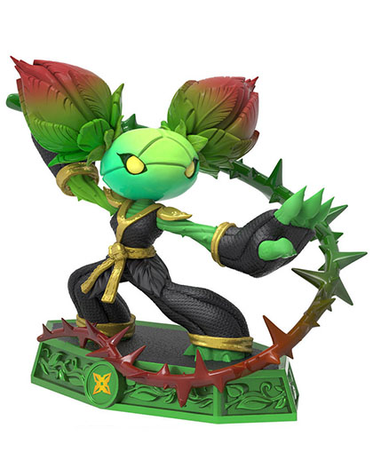 Después de usar su lodo mutagénico para convertir la leña en criaturas malignas, el Dr. Krankcase empezó a experimentar con plantas vivas. ¡Pero el efecto fue muy distinto! En lugar de ser villanos serviciales, las plantas mutadas se rebelaron de inmediato contra su creador y trataron de destruir su fábrica de lodo. El Dr. Krankcase y sus secuaces aplastaron a todas las plantas insurgentes salvo a una… ¡Boom Bloom! Su mutación le confirió habilidades ninja extraordinarias y le otorgó un látigo espinoso, con el que desencadenó un torrente de movimientos de artes marciales que forzaron al Dr. Krankcase a abandonar su propia fábrica y a jurar que nunca volvería a experimentar con plantas. Boom Bloom es ahora Sensei de la clase Ninja, y con sus increíbles habilidades enseña a los nuevos Skylanders a proteger la naturaleza… ¡y a desatar su furia!