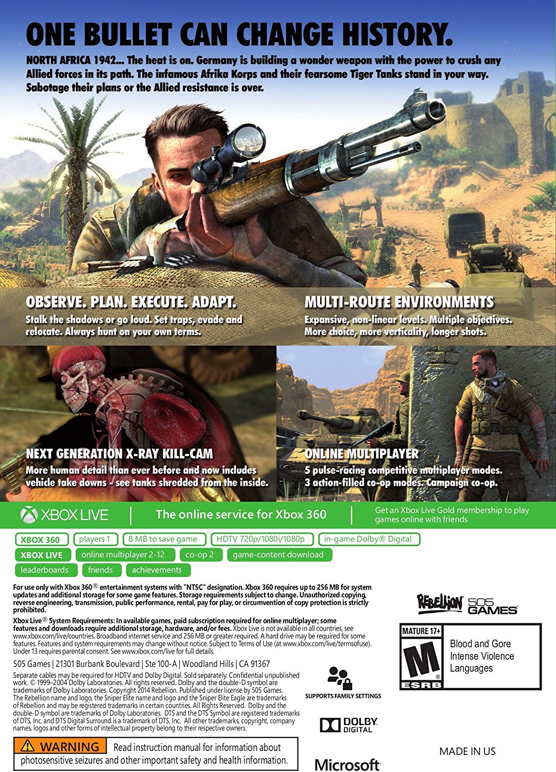 Esta tercera entrega de la saga Sniper Elite para PlayStation 4 vuelve a situarnos en la Segunda Guerra Mundial, en el papel de un francotirador.