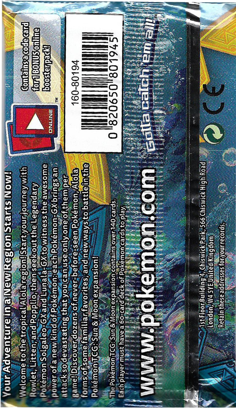 SOBRE POKEMON TRADING CARD GAME SUN AND MOON