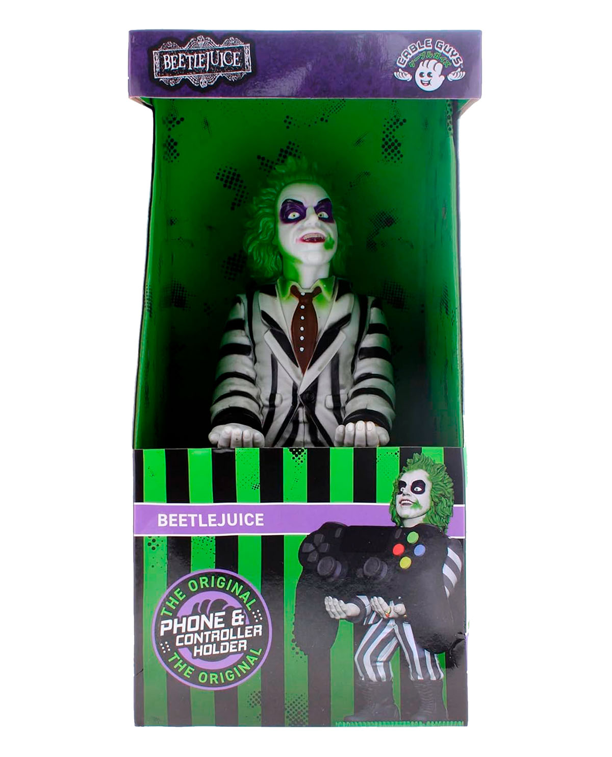 Este soporte oficial de Cable Guys presenta a Beetlejuice, el icónico personaje del cine fantástico, en una figura detallada y resistente que añade un toque irreverente a tu espacio. Diseñado para sostener controles, teléfonos y otros dispositivos, combina utilidad con un diseño que no pasa desapercibido.