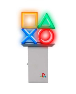 Este impresionante diseño iluminado, que da vida a uno de los símbolos de juego más icónicos, resalta los símbolos de PlayStation en un azul vibrante, colocados sobre una columna central blanca iluminada.