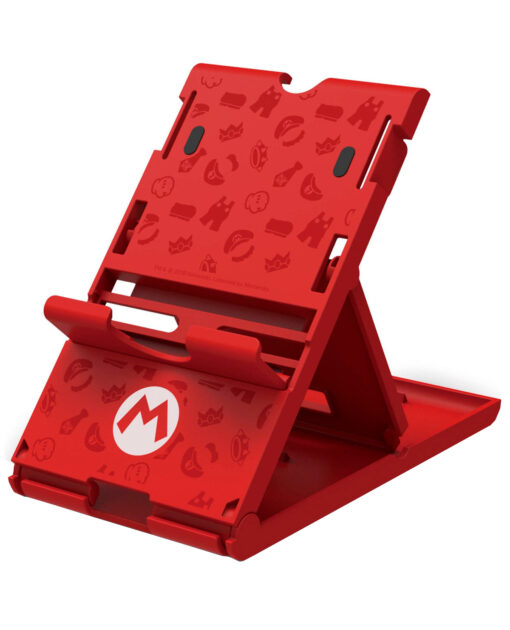 Con licencia oficial de Nintendo, el soporte de metal compacto”Mario Bros” está diseñado para sostener el conmutador de Nintendo para que puedas jugar y cargar en casa o sobre la marcha. Hecho de aleación de aluminio duradero, este soporte cuenta con articulación de 2 puntos para ángulos de visión ajustables. Las almohadillas de goma antideslizantes mantienen el Nintendo Switch en su lugar y evitan que la base se deslice. Su diseño plegable se adapta a tu bolsillo.