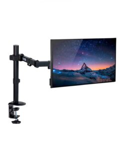 El soporte para monitor posee 4 movimientos libres: la rotación completa del soporte, el movimiento del cabezal de manera horizontal, girarla para colocar la pantalla de manera vertical y movimiento del codo del brazo.
