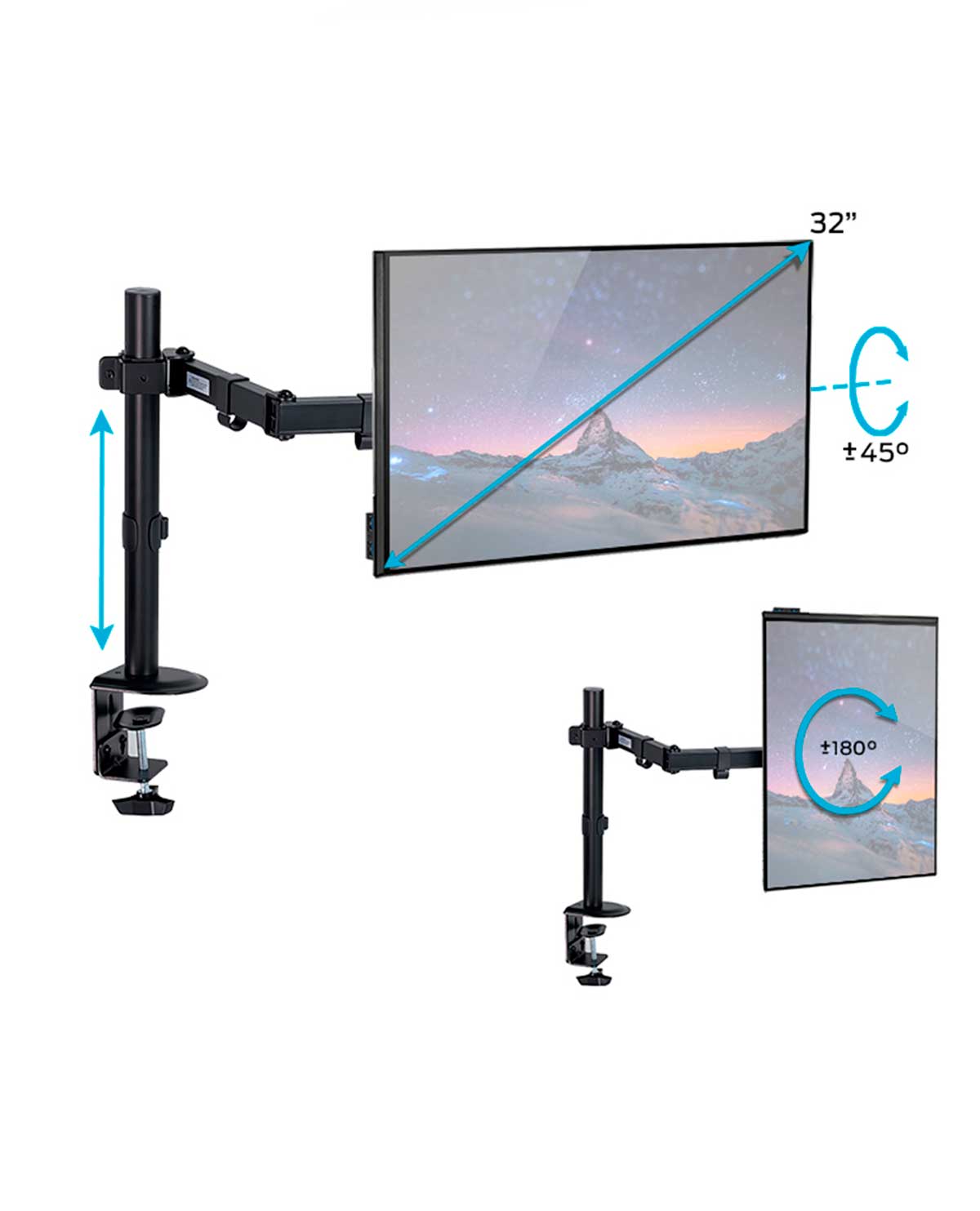 El brazo para monitor resiste hasta 9 kg de peso, es ideal para colocar una pantalla menor o hasta de 32 pulgadas. Instala el monitor en tu escritorio de la oficina o tu hogar sin importar si es plano o curvo.