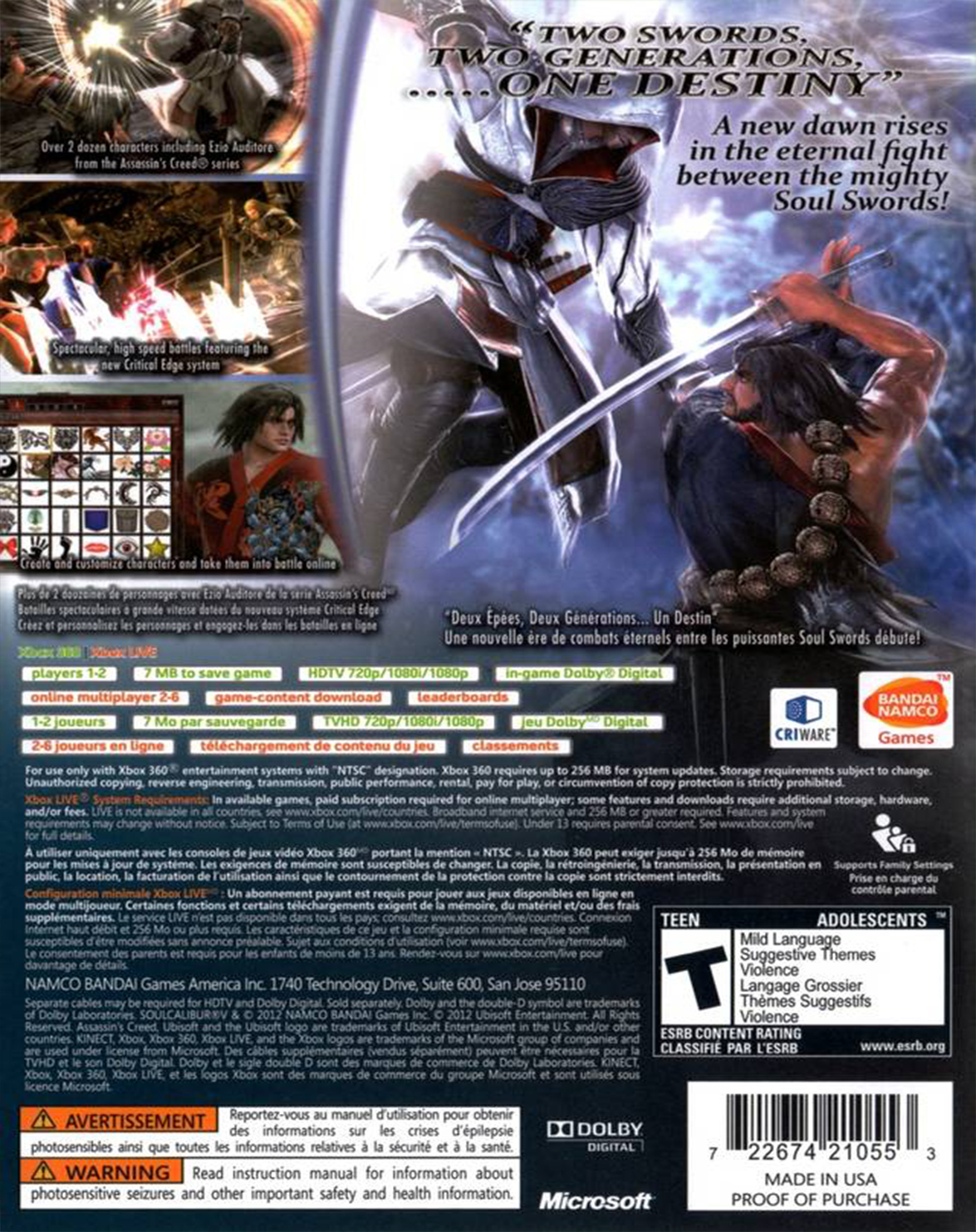 Soul Calibur V está preparado para avanzar aún más en el legado de la saga, con un adictivo combate cuerpo a cuerpo con arma, gráficos de enorme belleza y las solidez que caracteriza a la saga, atraerá a nuevos y a fans por igual.