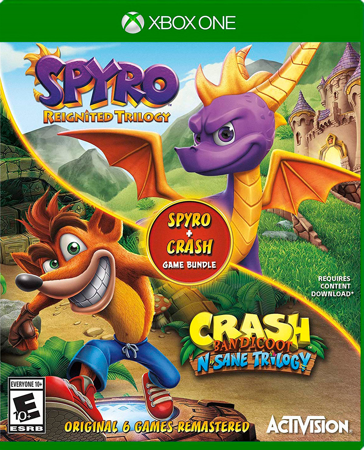 Las leyendas regresan en el paquete de juegos de Spyro + Crash Remastered para PS4. Duplica la diversión, obtienes 2 trilogías totalmente remasterizadas, la Trilogía Spyro Reignited y la Trilogía Crash Bandicoot N. Sane, para un total de 6 juegos icónicos.