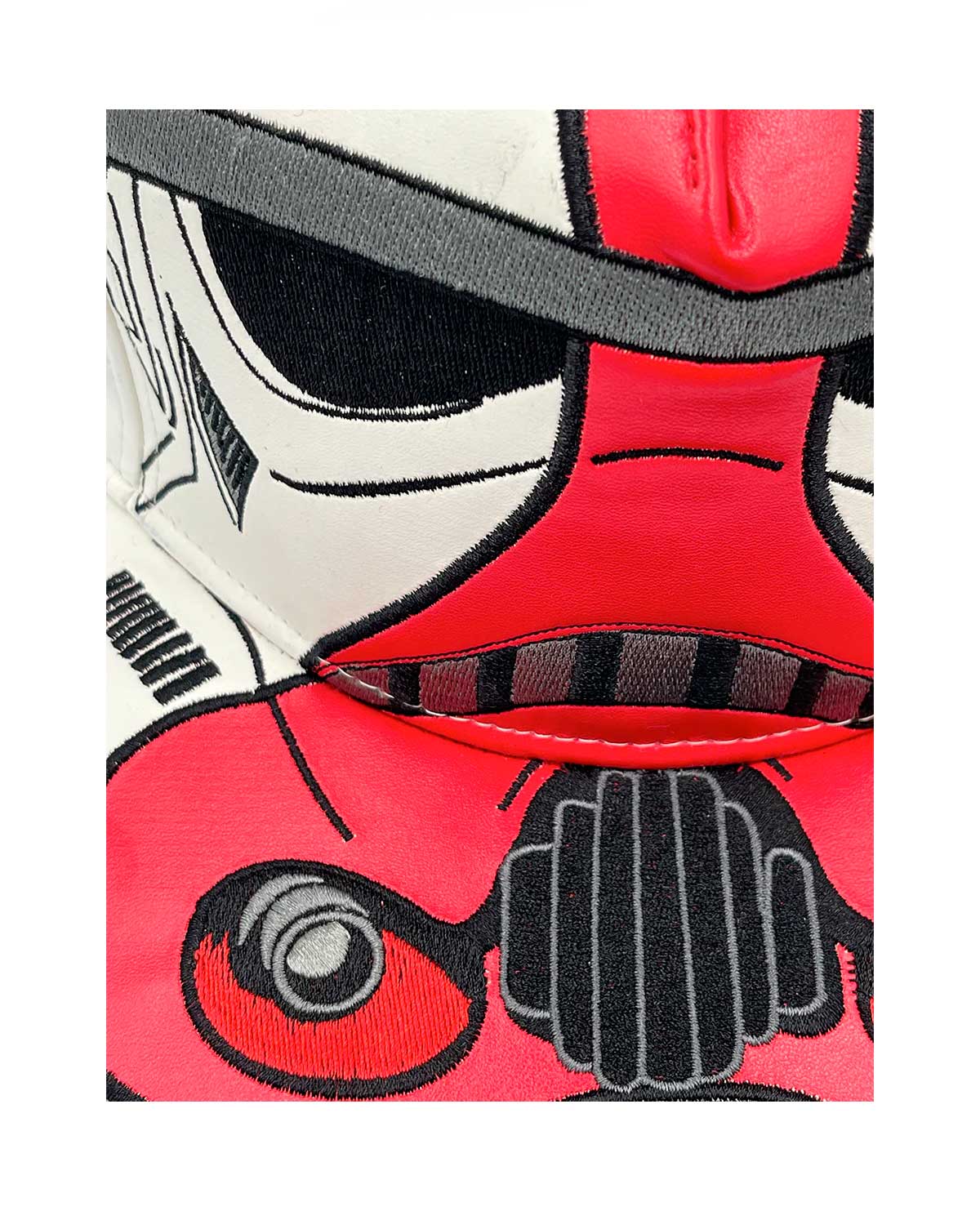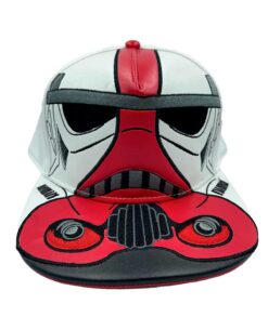 La gorra está diseñada con una combinación de materiales de alta calidad para garantizar su durabilidad y comodidad. Presenta el distintivo esquema de color blanco y rojo de los Incinerator Stormtroopers, resaltando su presencia imponente en el campo de batalla.