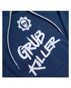 ¡Domina el campo de batalla con nuestra sudadera azul inspirada en Gears of War y en el legendario héroe Clayton Carmine, conocido como el "Grub Killer"!