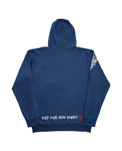 Esta sudadera está diseñada para los verdaderos fanáticos que desean mostrar su devoción por la franquicia. Confeccionada con tejidos de alta calidad para garantizar comodidad y durabilidad, esta prenda presenta un diseño vibrante con el apodo "Grub Killer" en el abdomen y la frase "Keep Your Head Down!!"impresa en letras audaces en la espalda.