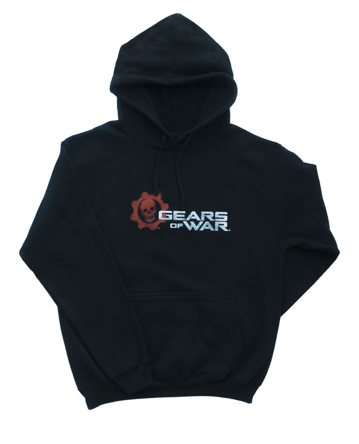 Sudadera negra con impresión sobre tela de logo de Gears of War, lacers, Marcus Fénix, Reina Myrrah y símbolo Locust en la espalda.