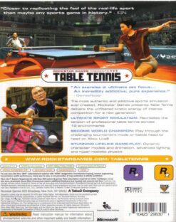 La compañía Rockstar Games es conocida por sus títulos violentos como Manhunt o la exitosa serie Grand Theft Auto, pero ahora va a ser conocida por algo mas, por brindarnos el mejor titulo que ha existido de Ping Pong. En Rockstar Table Tennis tu vas a encontrar uno de los mejores títulos de deportes que hay para cualquier consola, este juego toma el arcaico mecanismo del juego Pong y lo expande con todo el poder de tu Xbox 360 para brindarnos uno de los juegos mas adictivos que hay para cualquier consola.