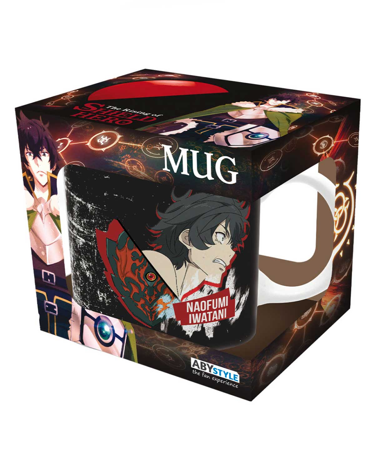 ¡Encontrarás a Naofumi Iwatani, el héroe con el escudo legendario, parte de los cuatro héroes legendarios en esta taza The Rising of the Shield Hero!