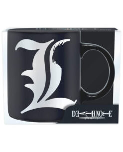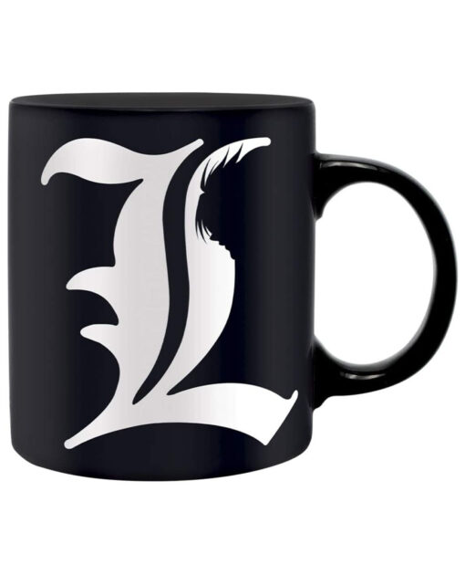 Taza de con el emblemático logo de L, el genio detective adicto a los postres con una misión: atrapar a Kira. Personaje del anime de culto Death Note.