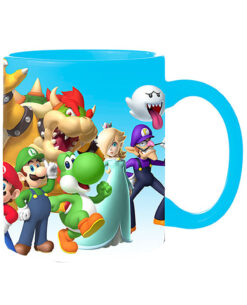 Con esta taza de Mario Bros, podrás sentirte como uno en el universo de tu juego favorito de Nintendo, esta taza es de cerámica, color azul, con la imagen de todos los personajes de Mario Bros.