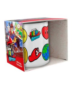 ¡Lleva a tu hogar el colorido y divertido mundo de Super Mario con esta fantástica taza! Incluye a los elementos clave de Super Mario Odyssey, como Cappy, una moneda de oro, un plátano, ¡y más!