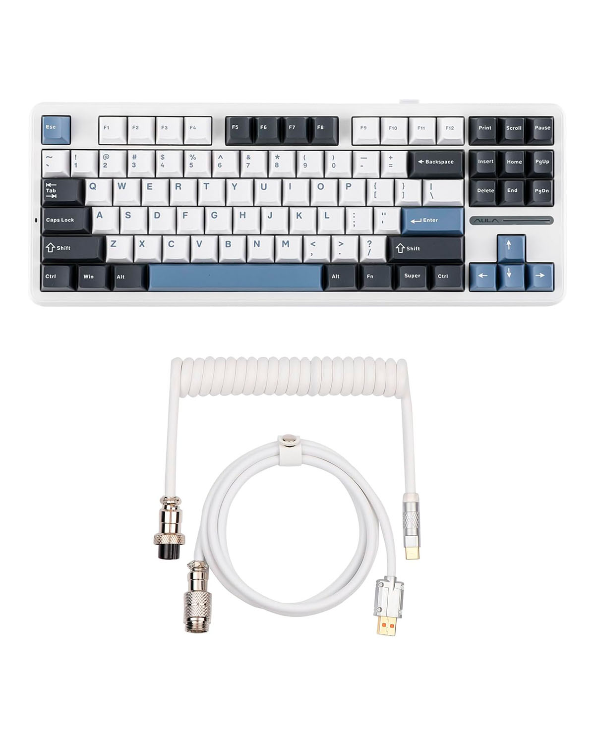 Haz que cada pulsación cuente con el Aula F87, un teclado mecánico compacto que combina diseño moderno y funcionalidad profesional. Su estética en blanco, negro y azul le da un toque único a tu setup, mientras que sus interruptores mecánicos garantizan una respuesta rápida y precisa en cada tecla.
