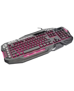 Teclado avanzado para juegos con iluminación LED, teclas programables y macros.