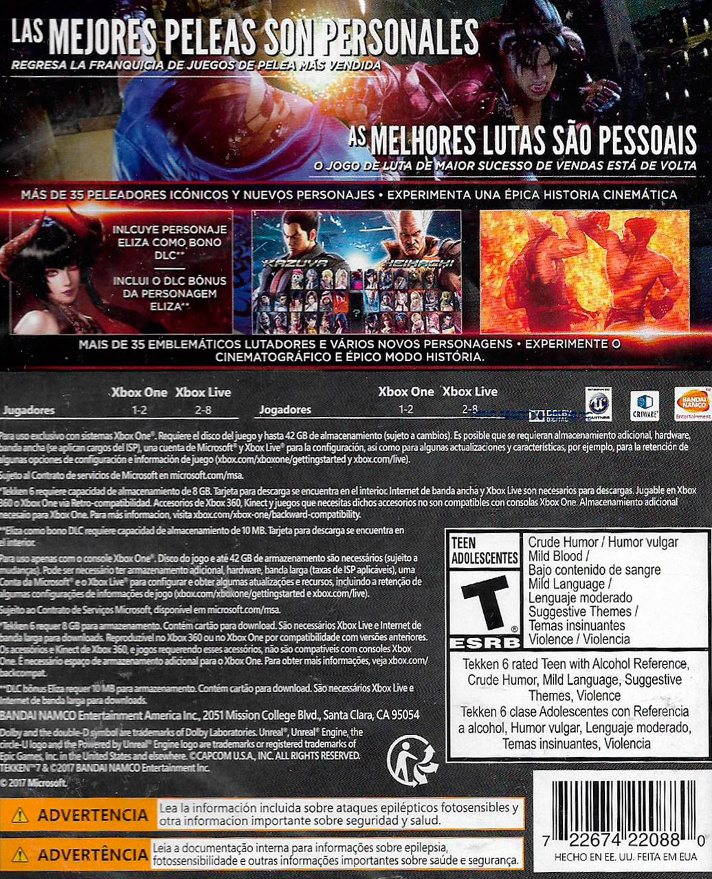 Disfruta del épico final del clan Mishima y descubre los motivos detrás de cada uno de los pasos de esta batalla interminable. TEKKEN 7, creado con Unreal Engine 4, ofrece espectaculares batallas con cinemáticas narrativas e intensos duelos para disfrutar con amigos y rivales gracias a las nuevas mecánicas de lucha.