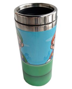 Super Mario: toma un descanso de los juegos para beber de la taza de viaje Warp Pipe, una taza de acero inoxidable con una tapa de plástico que tiene capacidad para 450 ml.