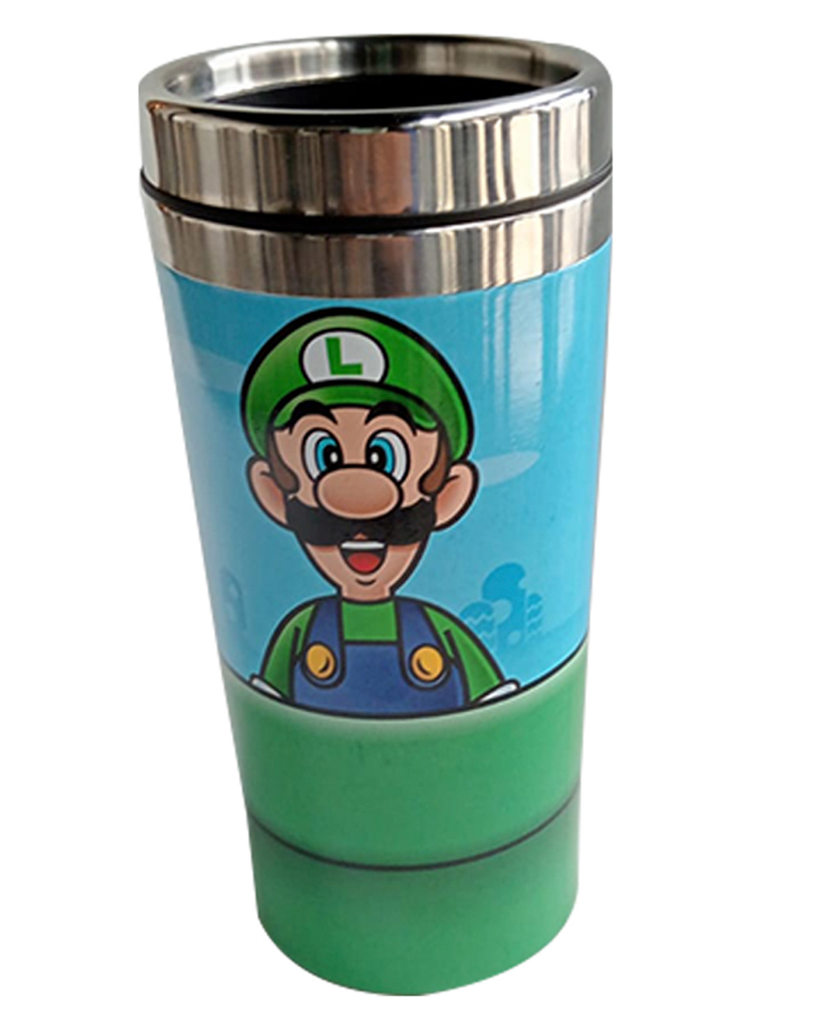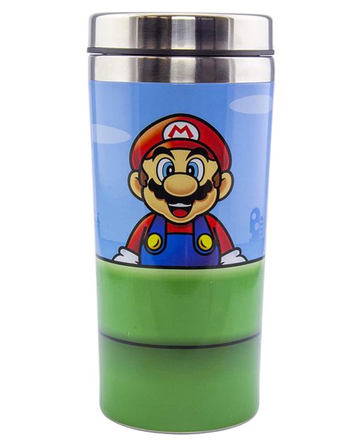 Super Mario: toma un descanso de los juegos para beber de la taza de viaje Warp Pipe, una taza de acero inoxidable con una tapa de plástico que tiene capacidad para 450 ml.