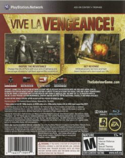 Bienvenido al París ocupado por los Nazis, un mundo abierto donde tu eres un Saboteador. El protagonista es Sean Devlin, un mecánico de carreras irlandés en busca de venganza contra un oficial Nazi que le ha quitado todo.