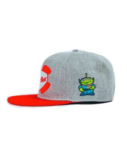 Si eres un verdadero fan de Disney, esta gorra con visera plana con diseño de Pizza Planet y parches de los marcianitos te hara lucir increíble en toda ocasión.