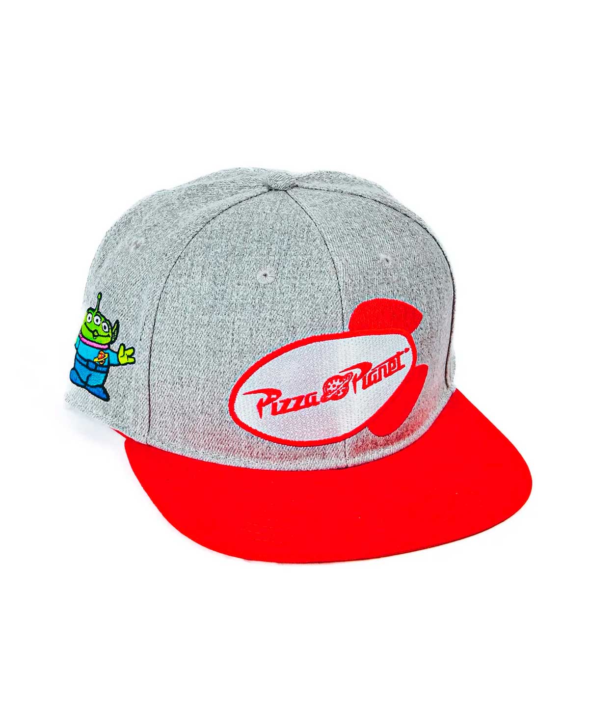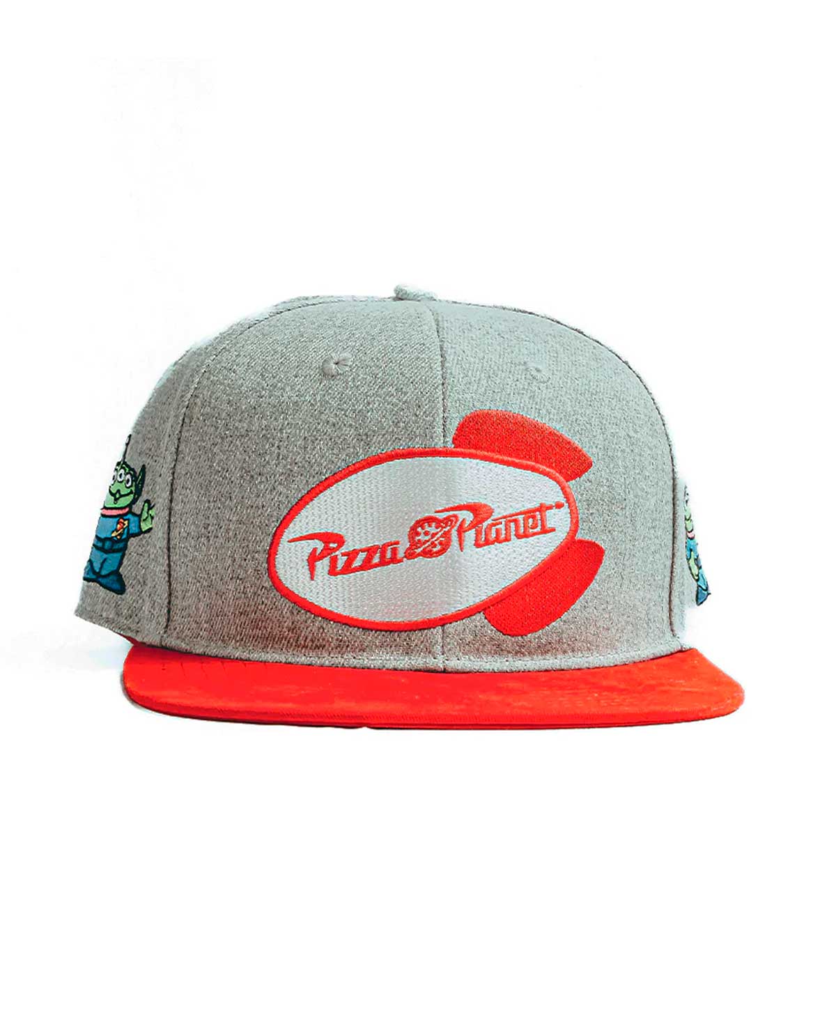 Si eres un verdadero fan de Disney, esta gorra con visera plana con diseño de Pizza Planet y parches de los marcianitos te hara lucir increíble en toda ocasión.
