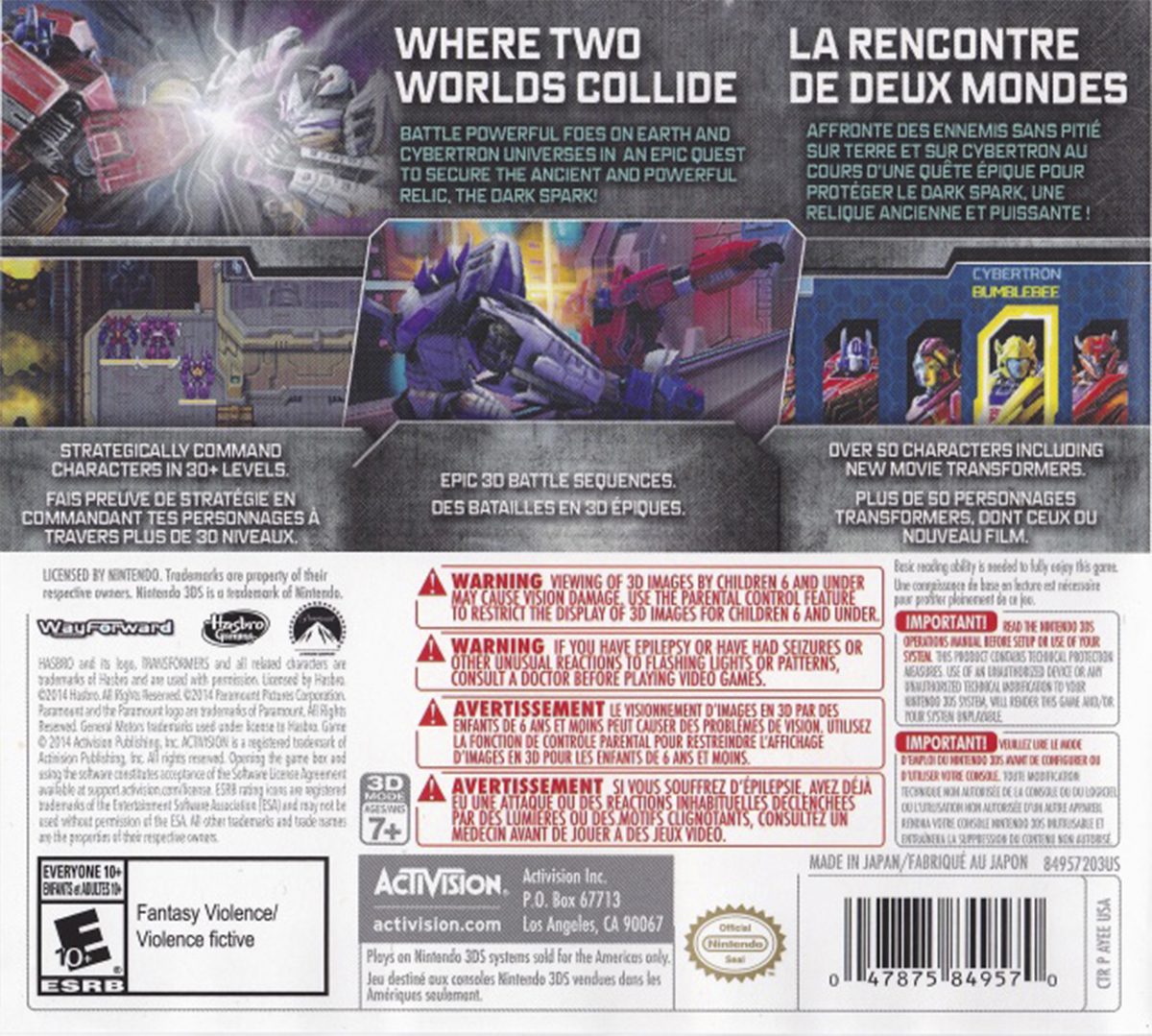 Transformers: Rise of the Dark Spark es un nuevo juego de Transformers que ejerce de puente entre las partes de Cybertron y la Tierra de la historia de los Transformers.