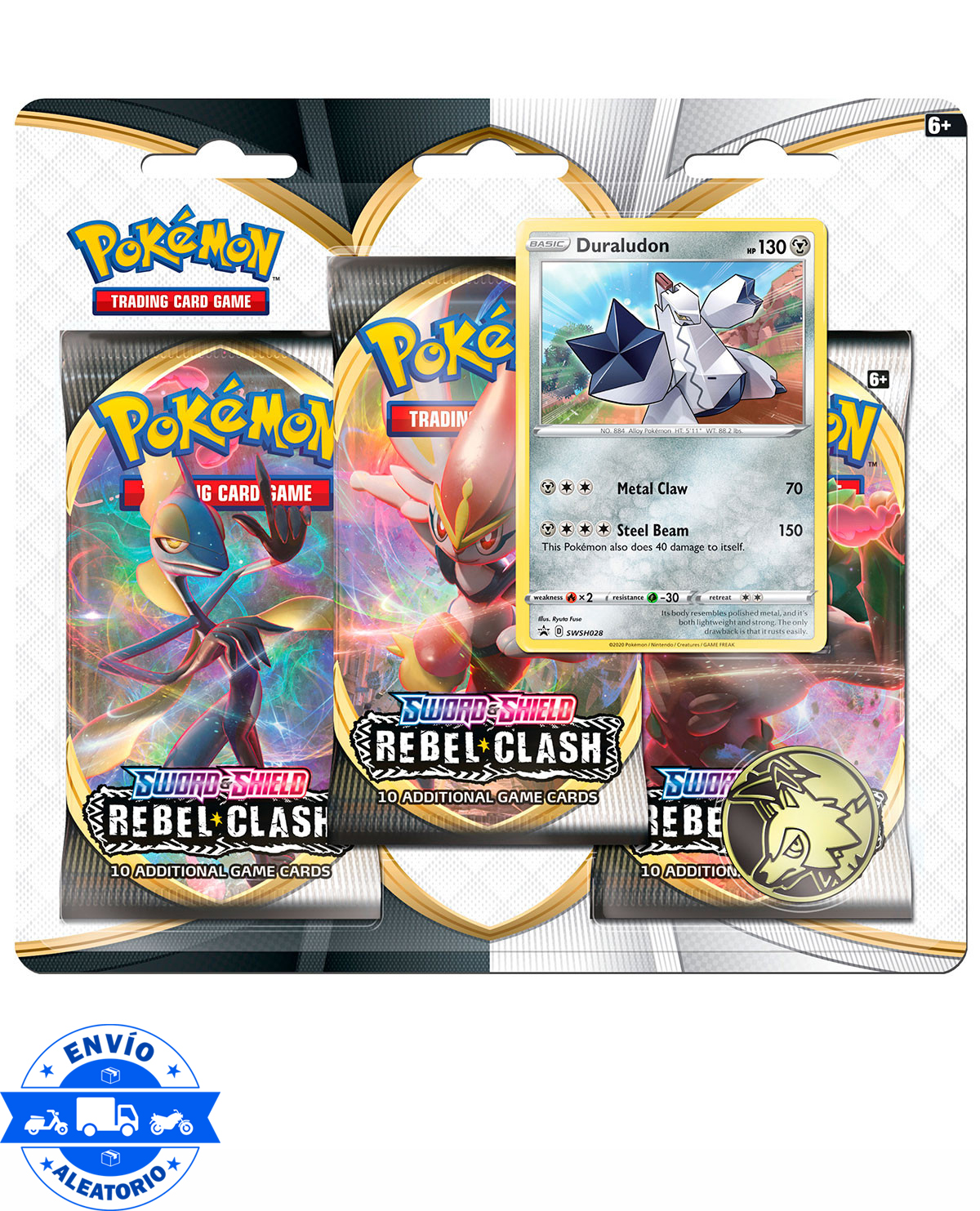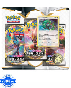 ¡Disfruta a tope con nuevos Pokémon! Sube el volumen e intensifica el ritmo para meterte de lleno en la rebelión, el caos y el punk de la expansión Espada y Escudo-Choque Rebelde de JCC Pokémon. ¡Viene cargada de Pokémon V como Toxtricity V, Dubwool V, Boltund V y Sandaconda V! También descubrirás algunos Pokémon VMAX, incluidas las Evoluciones finales de los tres Pokémon iniciales, además de Copperajah VMAX y Dragapult VMAX. ¡Súbete al escenario y toma las calles con la expansión Espada y Escudo-Choque Rebelde!*