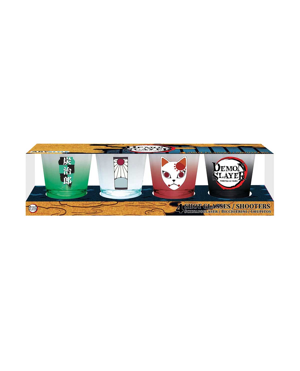 Comienza la fiesta cuando te enrolles con estos Demon Slayer Kimetsu no Yaiba con licencia oficial Juego de 4 vasos shoteros únicos. Este colorido juego de 4 vasos shoteros de Demon Slayer presenta diseños únicos de Demon Slayer Kimetsu no Yaiba en cada uno y tiene capacidad para 1.5 onzas.