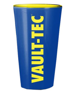El vaso es de 16 onzas, es de cerámica color azul y con la imagen de un lado de 111 y del otro lado Vault Tec resaltado con letras amarillas.