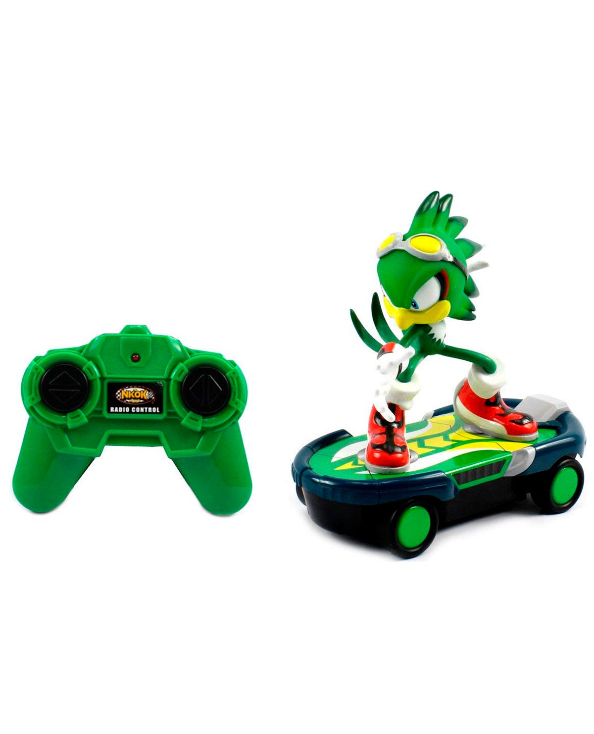 Siente la velocidad de las carreras de Sonic & Sega All-Stars Racing, con los radio control. Jet el halcón, viene a competir con su patineta con todas las funciones (avanzar hacia adelante, derecha, izquierda, reversa y frenado). Requiere 6 baterías AA (no vienen incluidas). Intenta ganar todas las carreras y trata de coleccionar a todos los personajes.