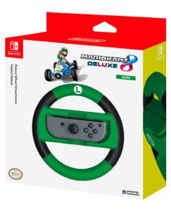 Recorre las emocionantes pistas de Mario Kart 8 Deluxe con este increíble volante. Simplemente coloca tu Joy-Con* en el volante y disfruta de un control más realista y mejor agarre. Un volante de mayor tamaño para un mejor control, complementado por un agarre de goma de lujo y gatillos grandes y sensibles separan este accesorio del resto.