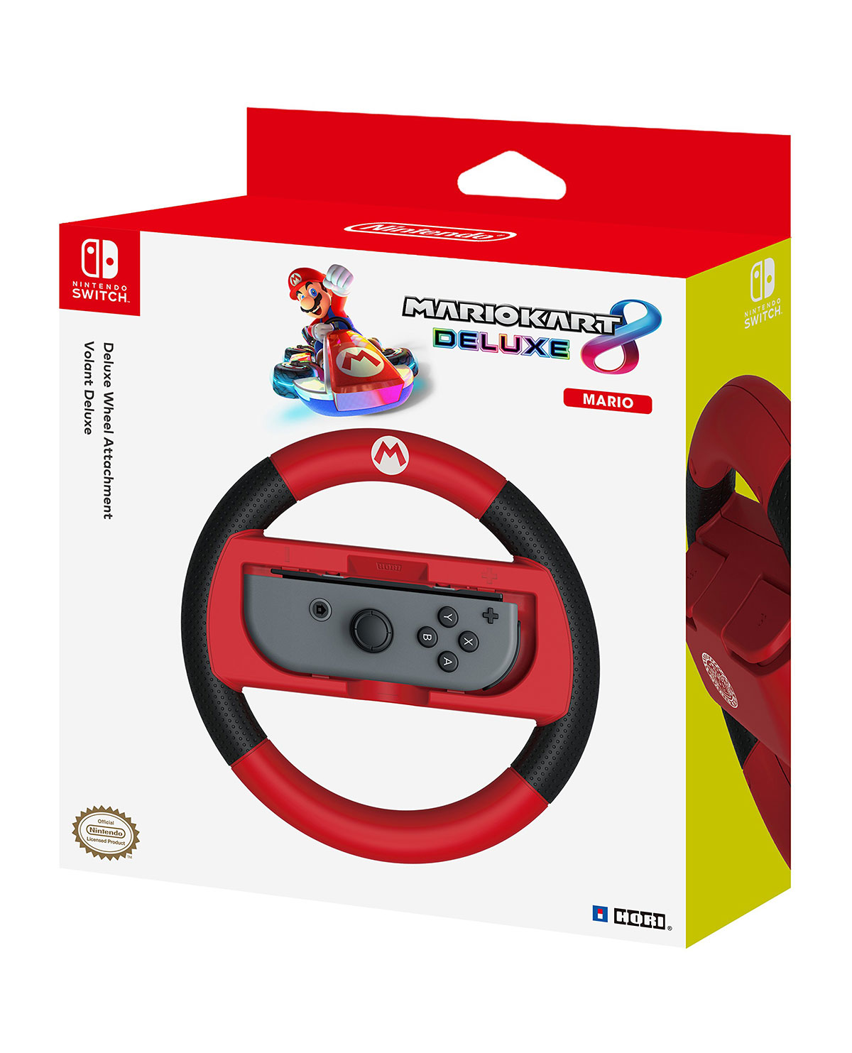 Recorre las emocionantes pistas de Mario Kart 8 Deluxe con este increíble volante. Simplemente coloca tu Joy-Con* en el volante y disfruta de un control más realista y mejor agarre. Un volante de mayor tamaño para un mejor control, complementado por un agarre de goma de lujo y gatillos grandes y sensibles separan este accesorio del resto.