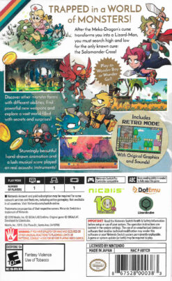 Wonderboy: The Dragons Trap contiene un hermoso diseño en la animación remasterizada del inolvidable Wonderboy III para Sega Master System. El juego desarrollado por Lizardcub contiene y respeta al juego original, replicando la función, los movimientos, las contraseñas, las locaciones de las puertas secretas y mucho más.